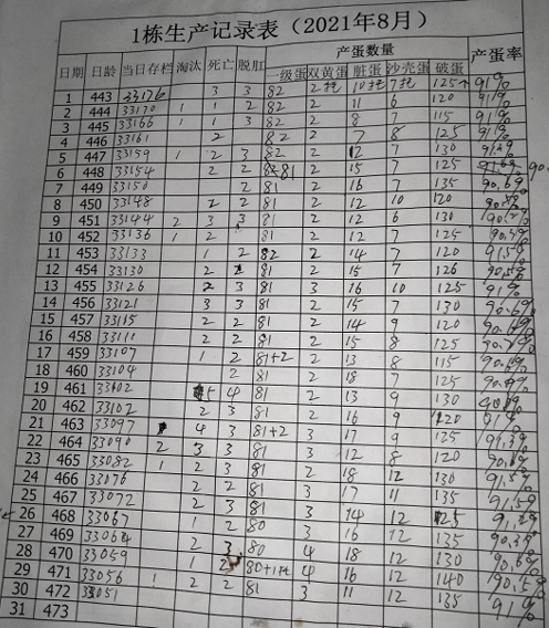 實(shí)際蛋雞生產(chǎn)中,20w蛋雞場都在用雜粕日糧,而生產(chǎn)水平也是相當(dāng)?shù)母撸?/span>470日齡產(chǎn)蛋率依然在91%以上。蛋重還能維持在47.0kg一箱(蛋重65克以上),見圖1。