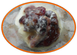 圖3- 糞便上有米粒大小,乳白色的節(jié)片 圖4- 腸粘膜肥厚,可見蟲體吸附于小腸粘膜上