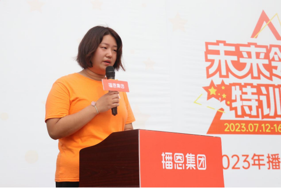家長代表任飛女士對集團本次舉辦的夏令營表示了最真誠的謝意,感謝公司為孩子們搭建的學習與交流的平臺。播二代夏令營給孩子們創(chuàng)造了一個專業(yè)學習、開闊視野和能力培養(yǎng)的機會,發(fā)現(xiàn)了孩子們無限的潛力和創(chuàng)造力,也點燃了孩子們學習與交友的熱情。她祝愿播二代夏令營越辦越好,也祝愿播恩發(fā)展長虹。
